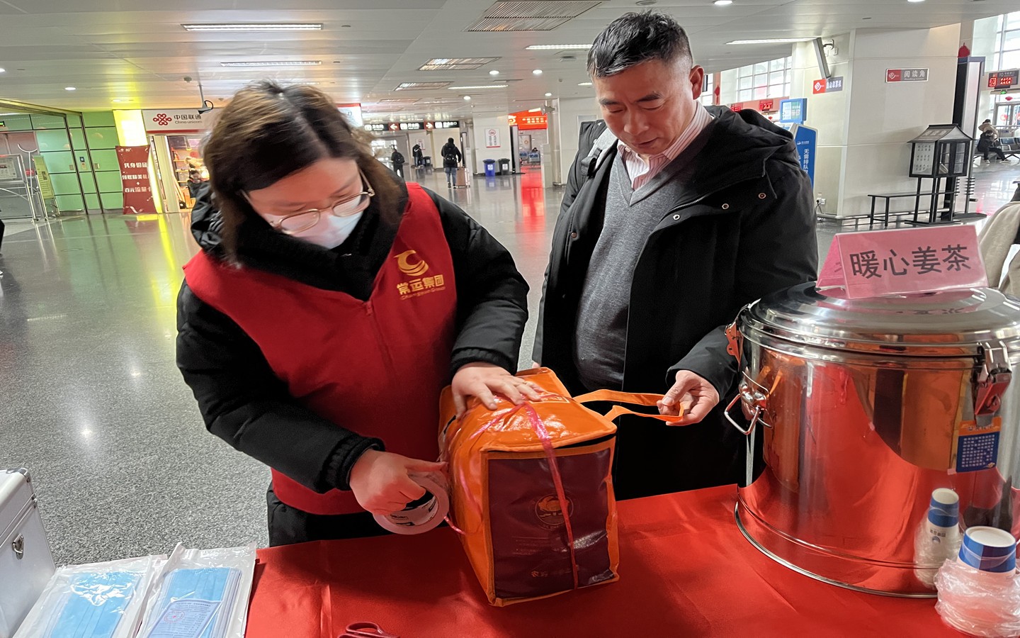 更走心是對寒冬報以熱愛。2月以來,多地降雪,常州的氣溫也較低,特別是早上六七點更冷。車站工作人員早早準備,搭起“春運溫馨服務(wù)站”,免費提供熱騰騰的姜茶,一杯杯姜茶讓車站里南來北往的過客多了不少互動,也增加了很多的歡聲笑語。