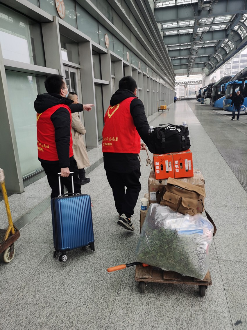 “怎樣讓我們的志愿服務(wù)更走心,更加滿足旅客進站乘車的真正剛需”,常運集團在組織今年的“愛在旅途 順風志愿行”春運志愿服務(wù)活動時首先專注這里。務(wù)工返鄉(xiāng)的旅客行李多,中老年旅客需要更多的人工指引幫助,攜帶“小候鳥”回家的既要拎著行李還要拖著孩子……各種各樣的情況,各種各樣的需求。因此,常州汽車站順風志愿服務(wù)隊將回答問詢、站內(nèi)引導、幫提行李這些乘車剛需作為服務(wù)重點,2月7-8日,志愿者們分布在實名制進站口、安檢儀旁及候車室、一樓廣場,一幕幕溫暖的故事持續(xù)上演。一對回新沂的老夫妻,拖著平板車,上面放著紙箱拎袋七八個,外加兩輛不新的折疊自行車,拖車寬到進不了閘機;一位阿姨拖著大號行李箱,手提拎包拎袋四五個,獨自上不了電梯;一個大叔是孩子在“常州汽車站”微信公眾號上幫買了票,以為要取了票才能乘車又不會操作;還有一雙干燥皴裂的手拿著一張車票,不知道在哪里檢票而不知所措,這些都在志愿者和車站工作人員的幫助下,順利地踏上了歸途,他們一連十幾個的“謝謝”和不停回眸的點頭笑容,讓志愿者們也靦腆起來。